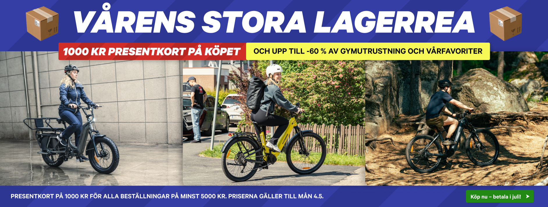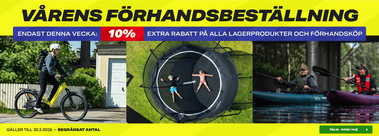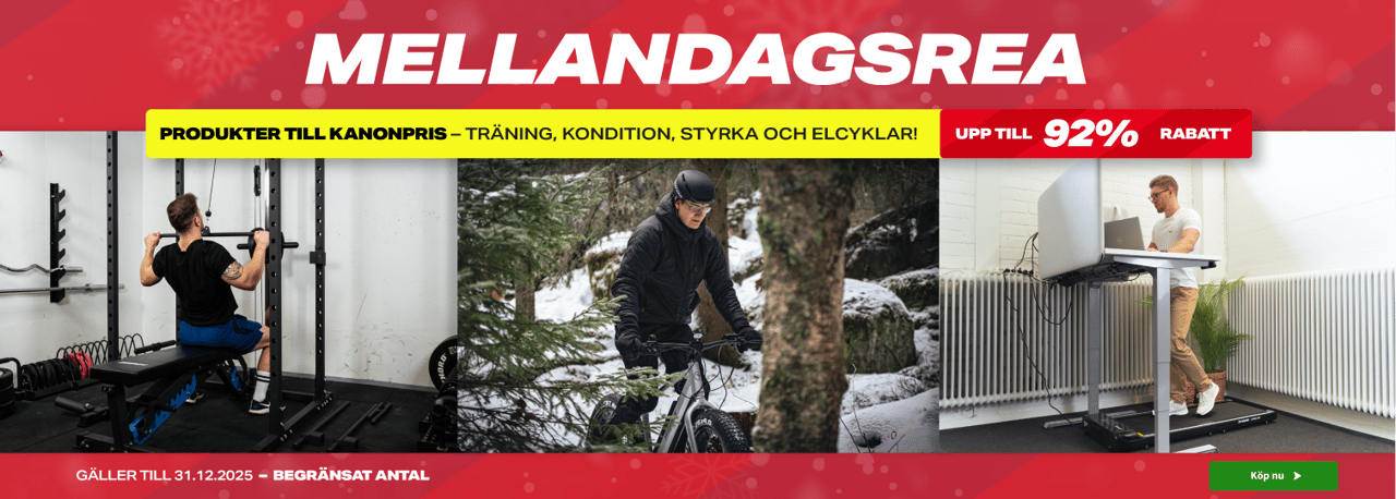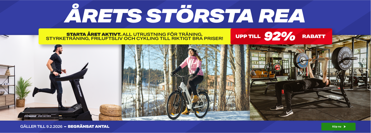 Vi har allt från träningsmaskiner som löpband och motionscyklar till gymutrustning som skivstänger och hantlar, samt outdoor-produkter som SUP-brädor och elcyklar. Dessutom hittar du tillbehör inom massage och fitness.