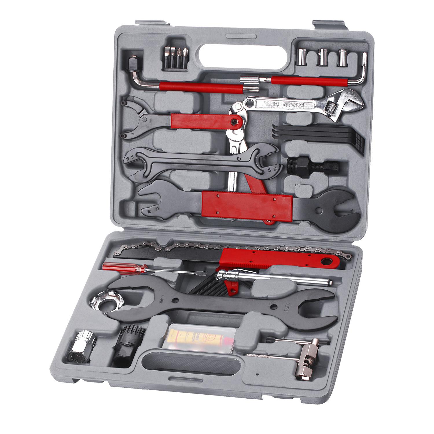 ArmorDuty RS-03 är en omfattande 37-delars reparationssats för cykelunderhåll och reparation. Detta mångsidiga set innehåller alla nödvändiga verktyg för underhåll av kedjor, nav, frihjul och andra delar. Ett utmärkt val för både hemmamekaniker och aktiva cyklister som vill hålla sin cykel i toppskick.