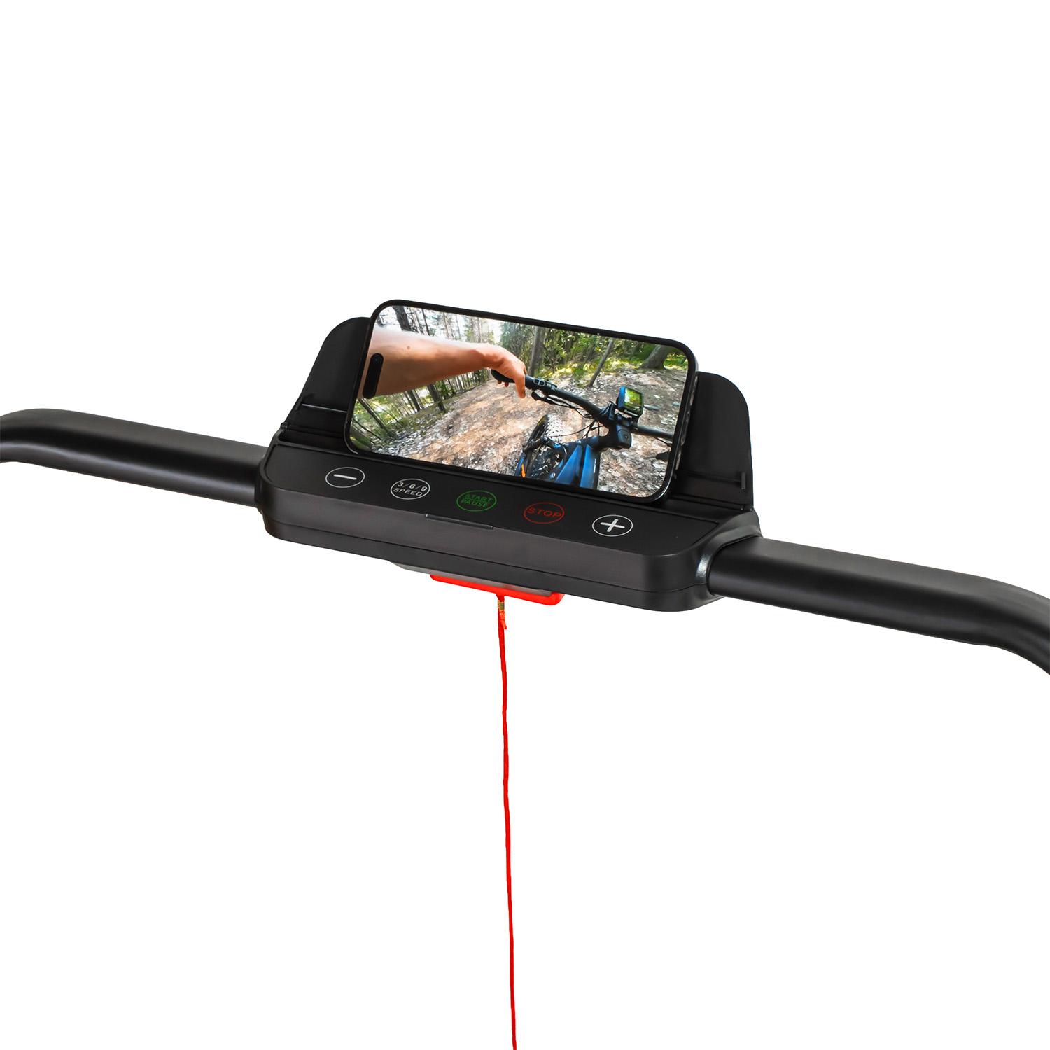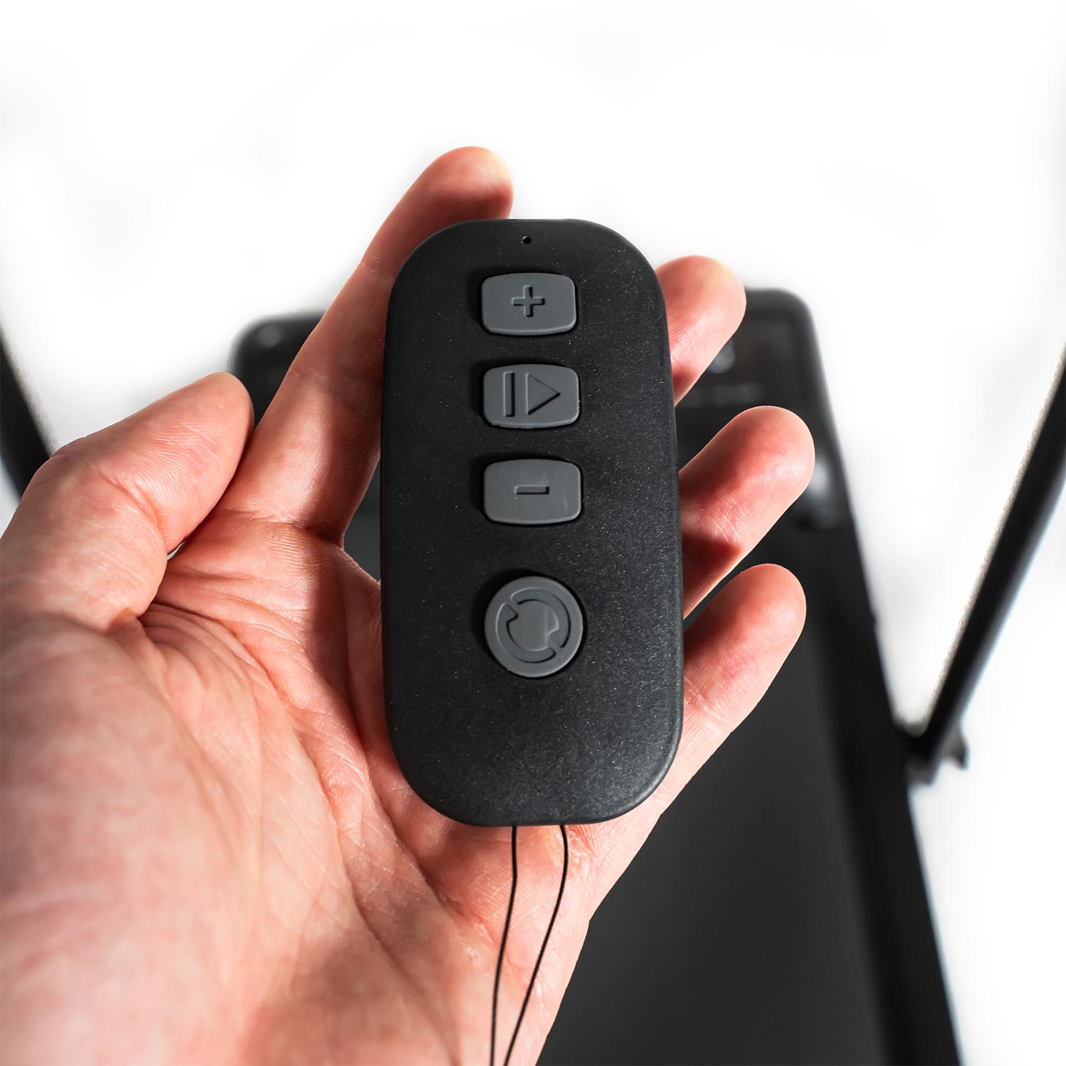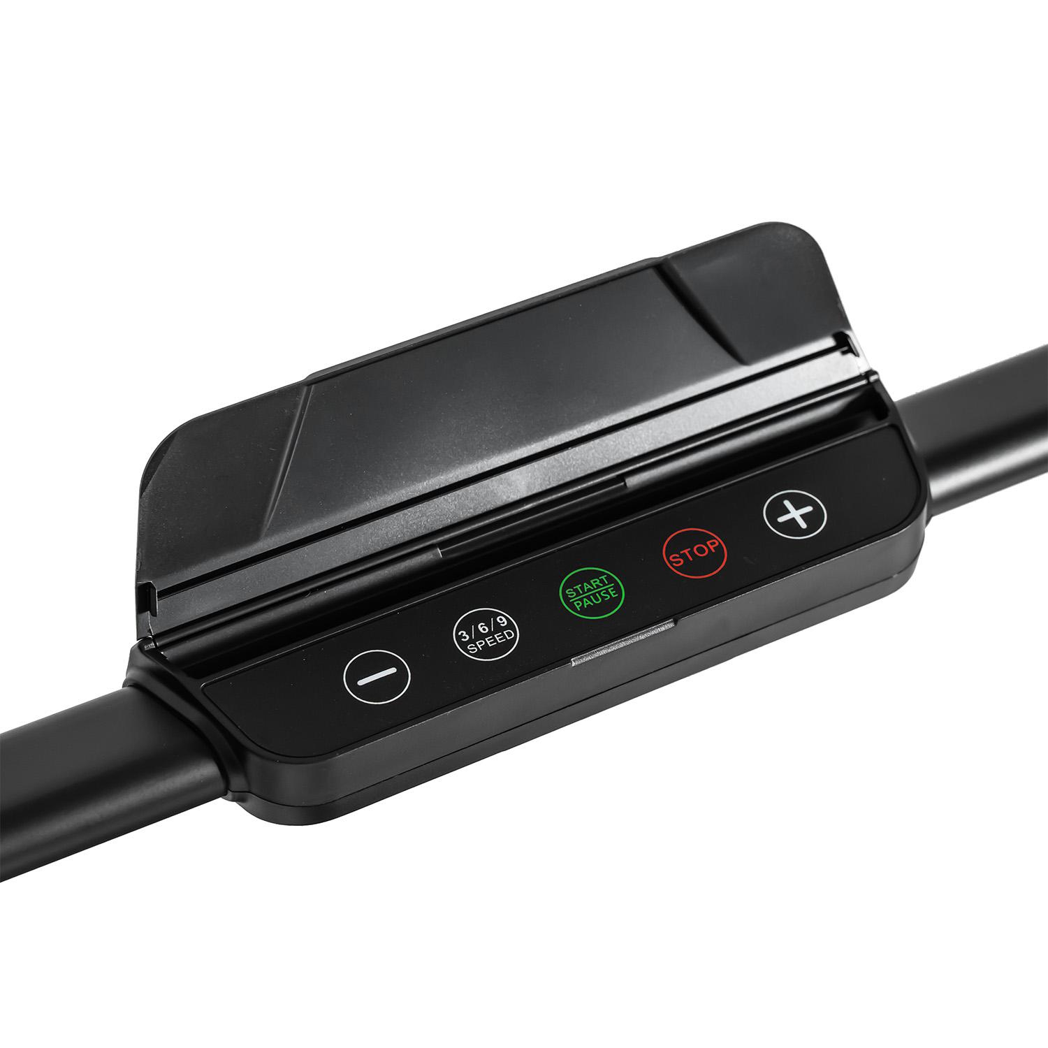 Gåbandets funktioner styrs med en smidig fjärrkontroll. Den tydliga LED-displayen på framsidan visar hastighet, tid, distans, kalorier samt antal steg – allt du behöver!