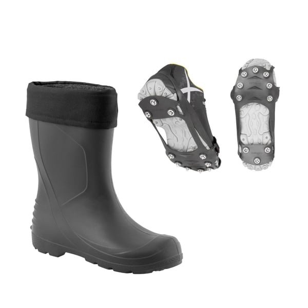 Varma, sköna stövlar och ett par halkskydd för säkra vinterpromenader!