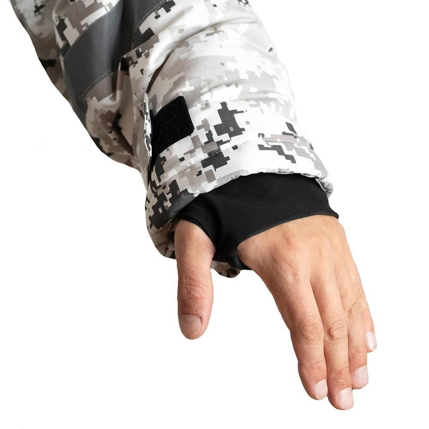 ISFOG Faraway-overallens huva är stor, justerbar och formsydd och ger plats för en tjock mössa. De justerbara hängslena förbättrar passformen och gör att overallens tyngd inte belastar ryggen onödigt. Den här vinteroverallen är tillgänglig i storlekarna XS–XXXL.